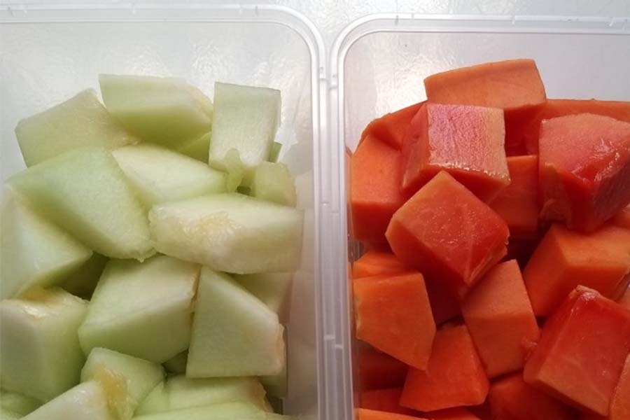 Potongan pepaya atau melon.