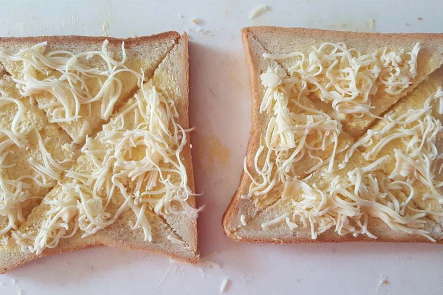 Roti gandum oles mentega dan keju parut
